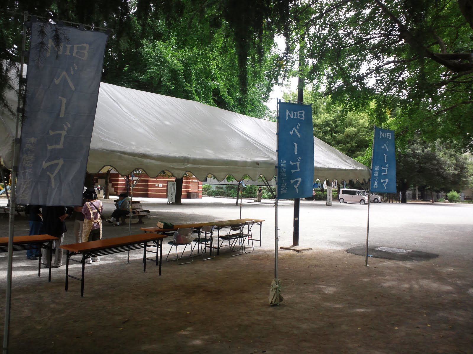 「やっぱりうちの会はこれだよね」早速テントにしばりつけみんなご満悦。